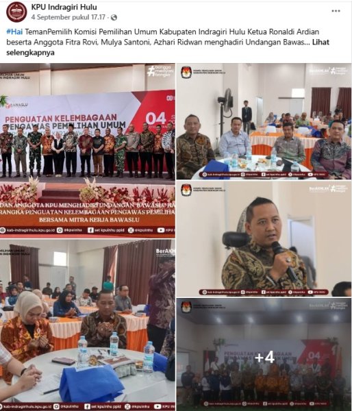 #Hai TemanPemilih Komisi Pemilihan Umum Kabupaten Indragiri Hulu Ketua Ronaldi Ardian beserta Anggota Fitra Rovi, Mulya Santoni, Azhari Ridwan menghadiri Undangan Bawaslu Kabupaten Indragiri Hulu Dalam Rangka Penguatan Kelembagaan Pengawas Pemilihan Umum Bersama Mitra Kerja Bawaslu.